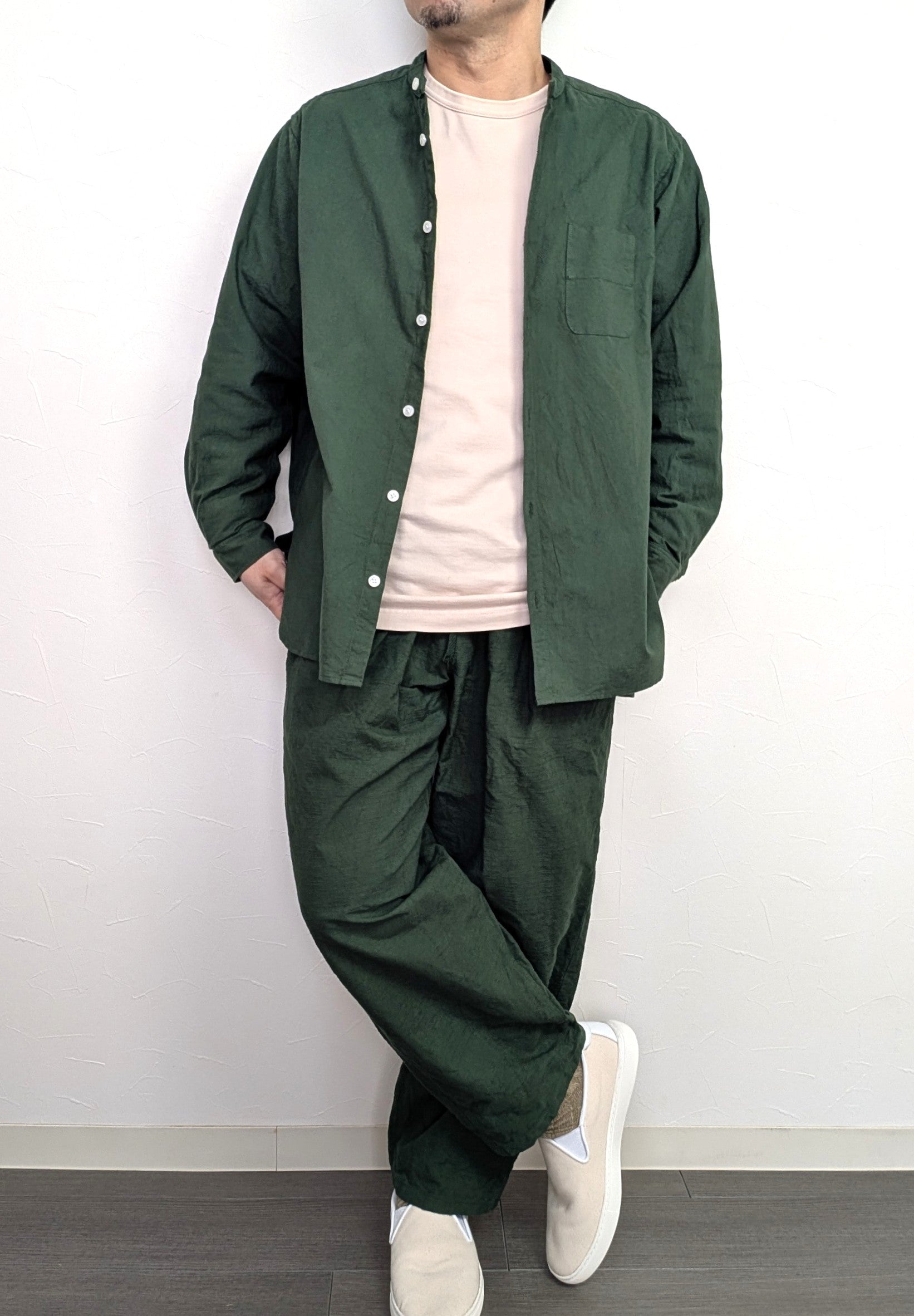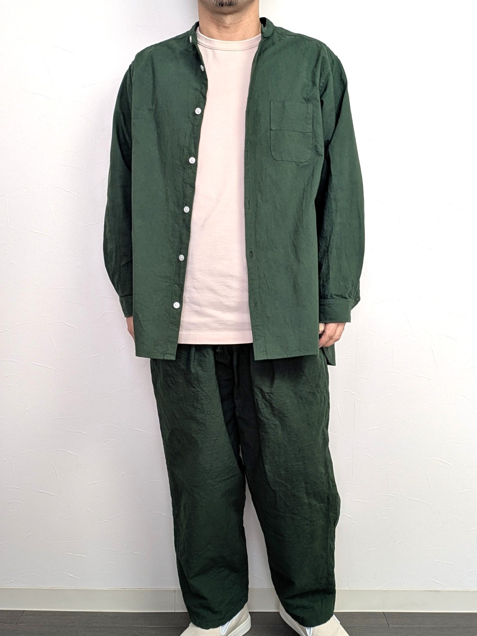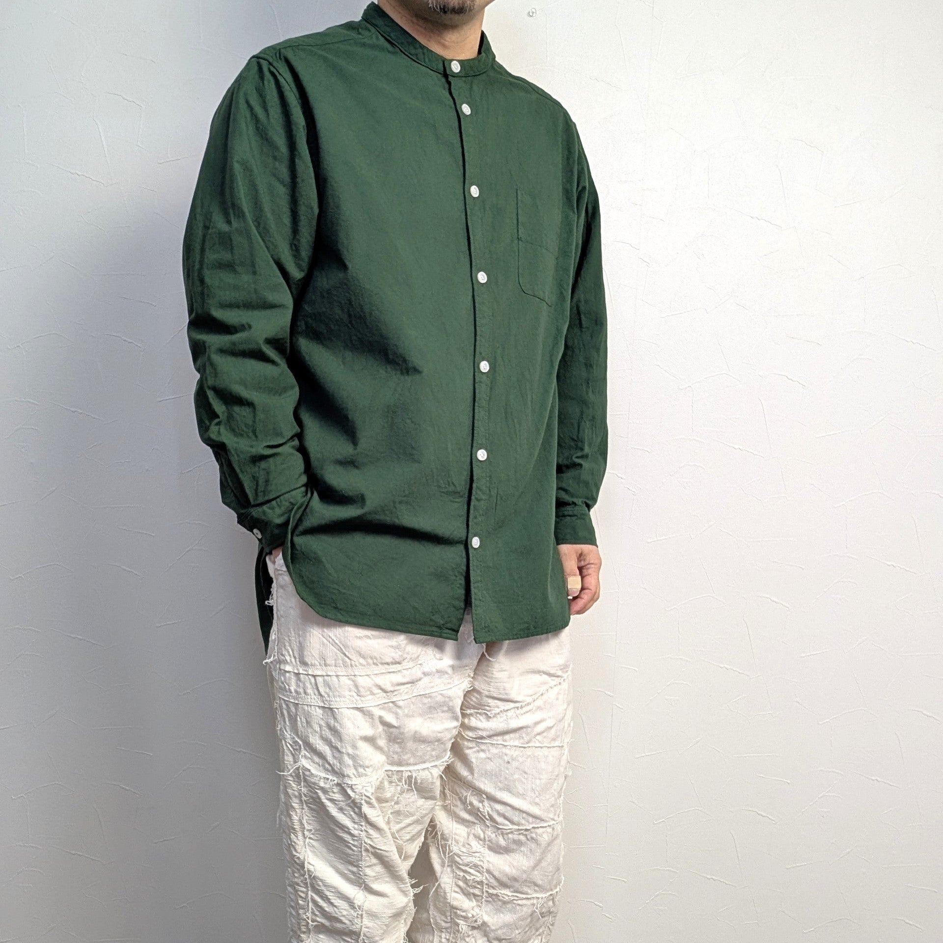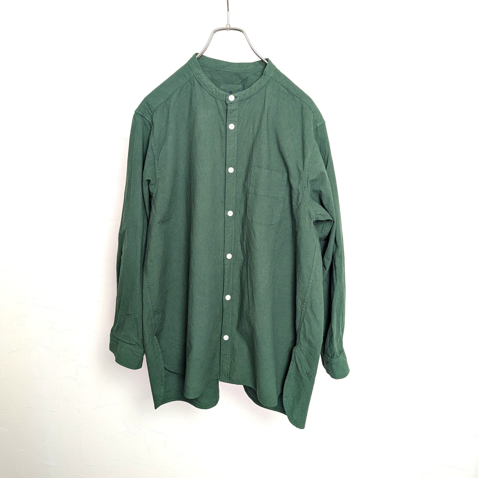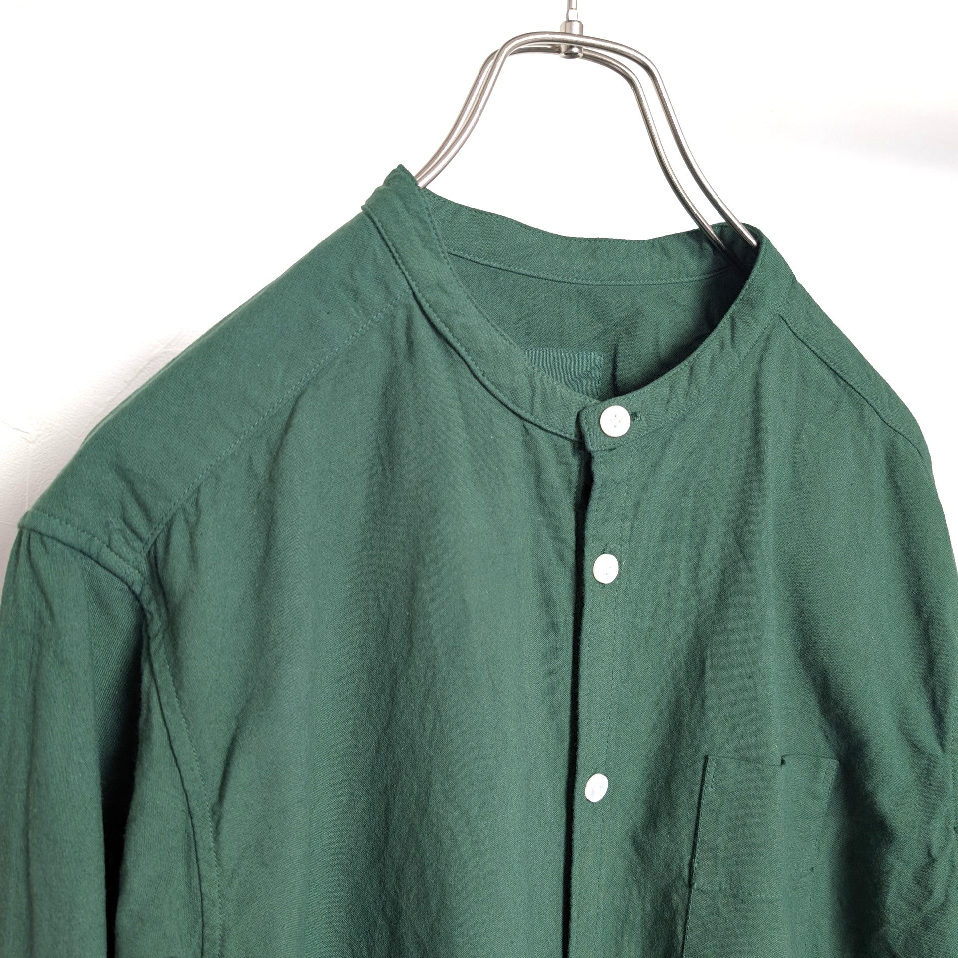 <OSOCU> 伝統色染め 織部色 知多木綿 バンドカラーシャツ