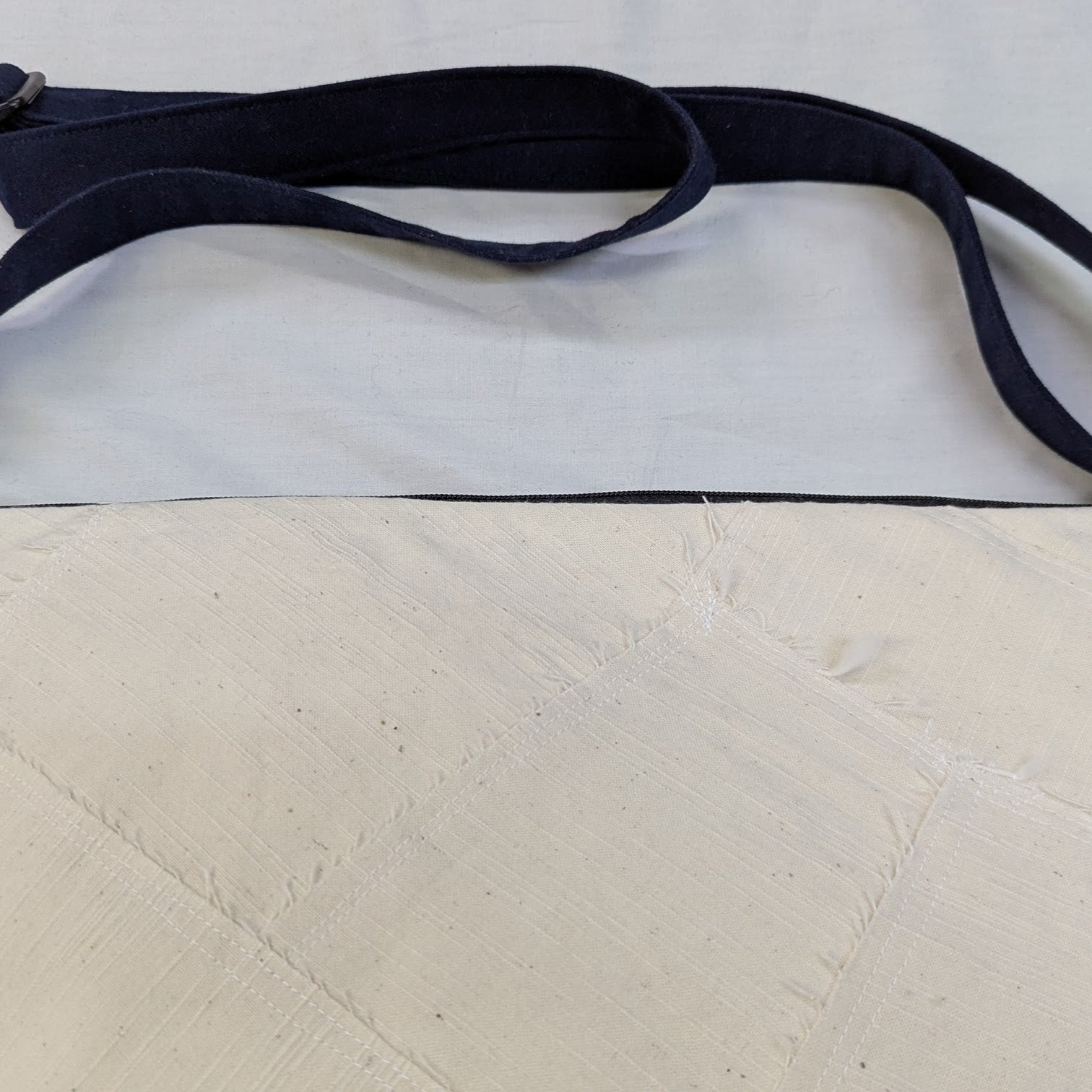 裏地と紐は、綿100%のオックスフォード。播州の商社さんが廃業される際に買い取った生地の一つで、おそらく播州産地の生地ですが、詳細は不明です。