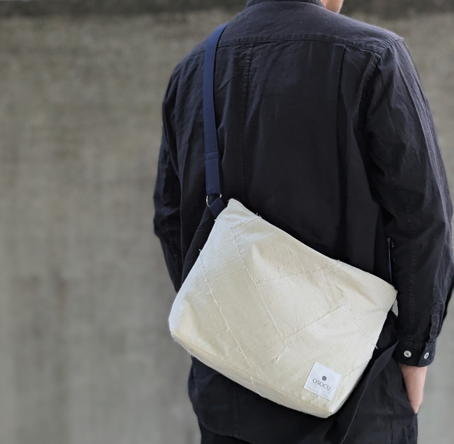 サコッシュより少し大きい 知多木綿 ミニショルダーバッグ 「ツギハギ」