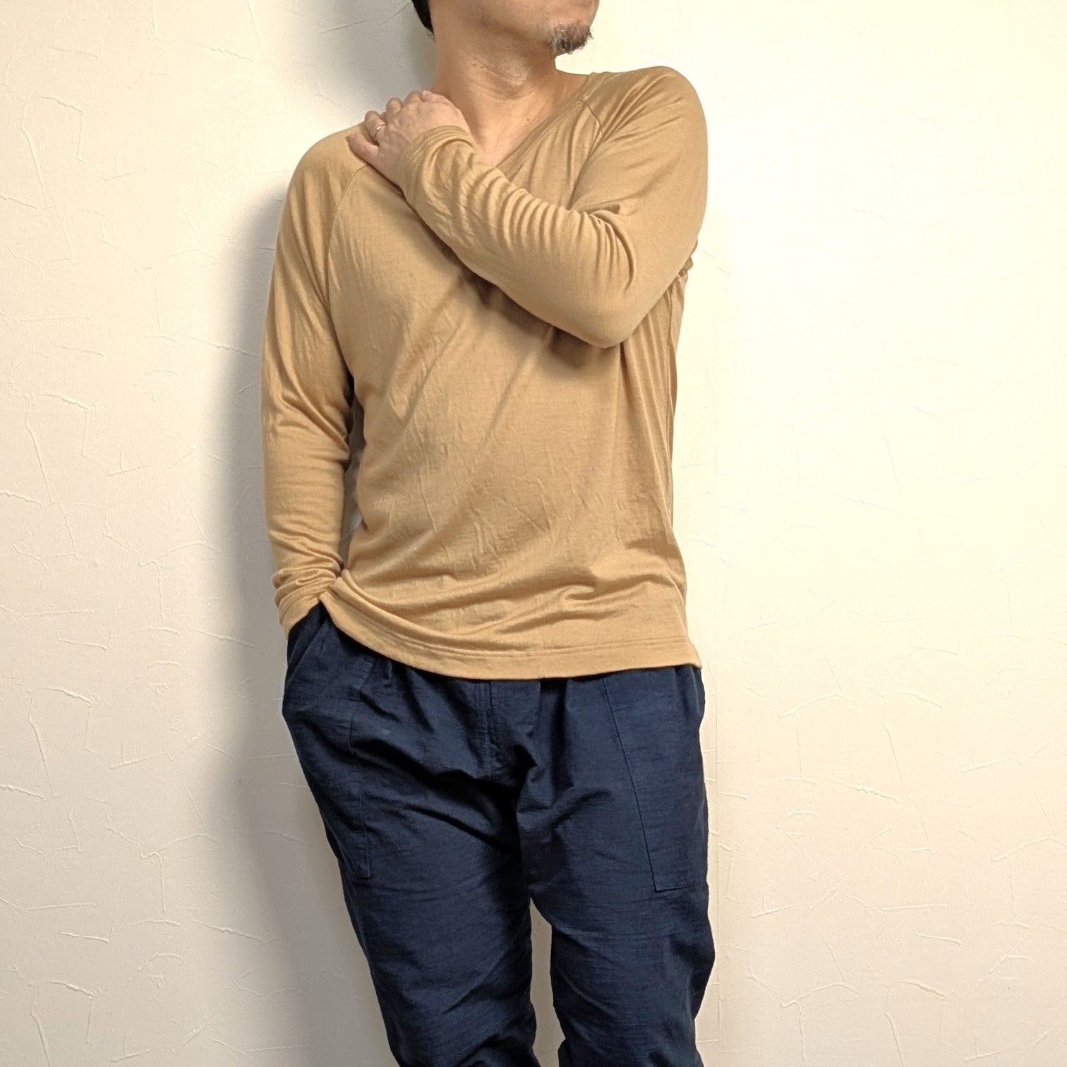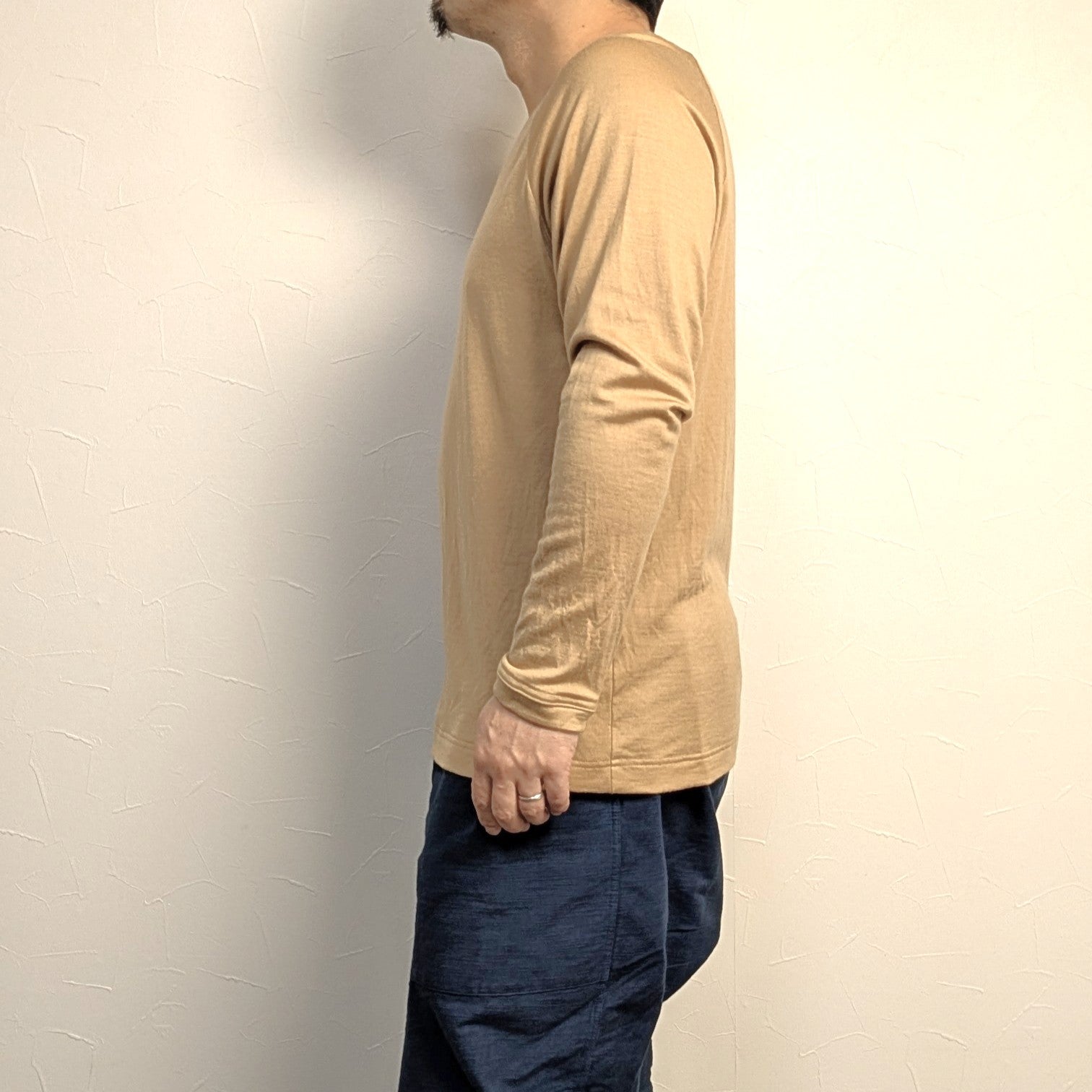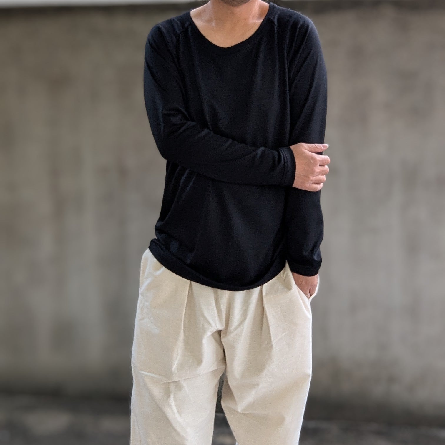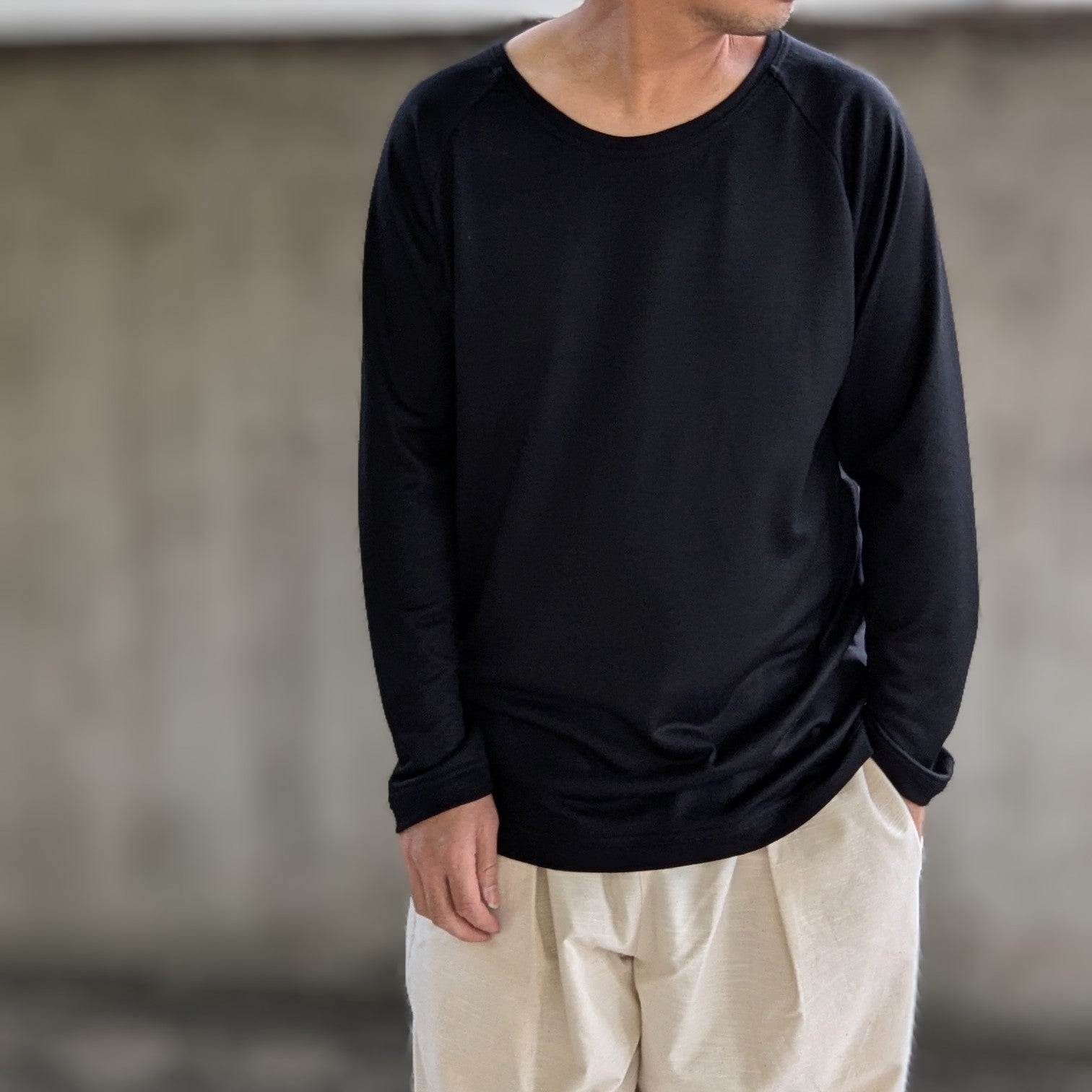 チクチク感が驚くほど無い極細の原毛から生まれた生地で、ウールの服に良いイメージが無い人ほど驚くと思います。ウールの特性である保温性・吸放湿性・消臭抗菌性といった機能はインナー用途で特に本領発揮されます。
