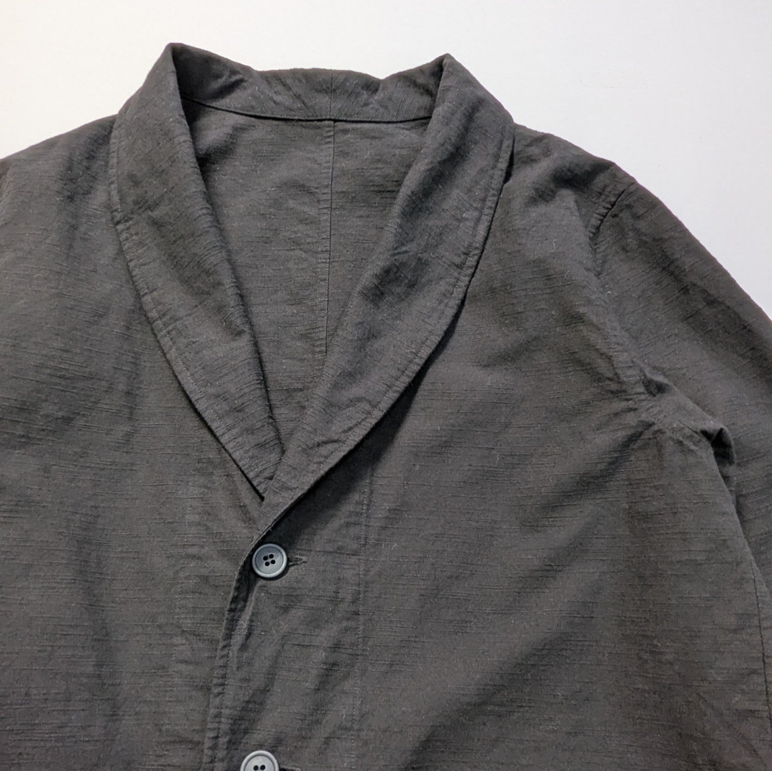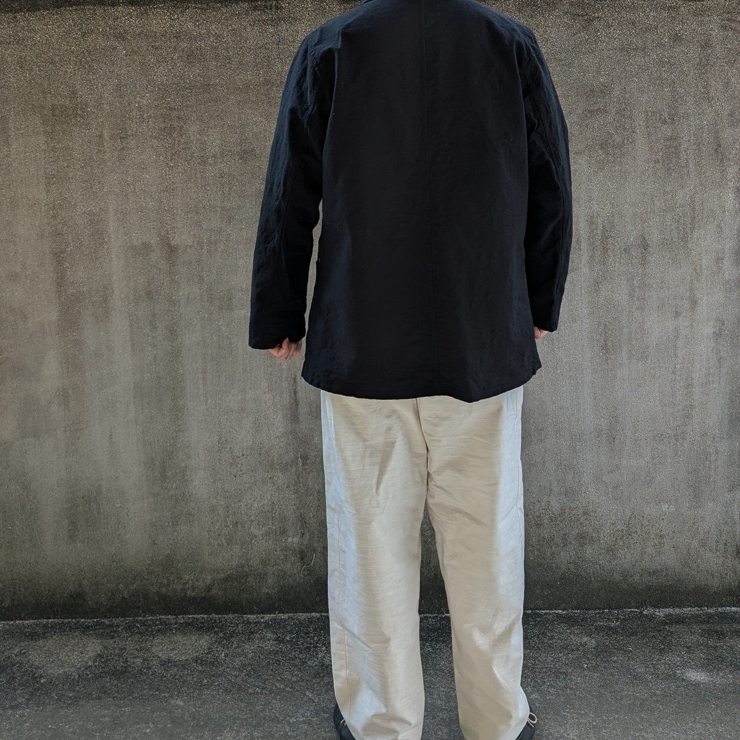 その生地でジャケットを作り、名古屋市の伝統工芸でもある名古屋黒紋付染の職人に真っ黒に仕上げてもらいました。