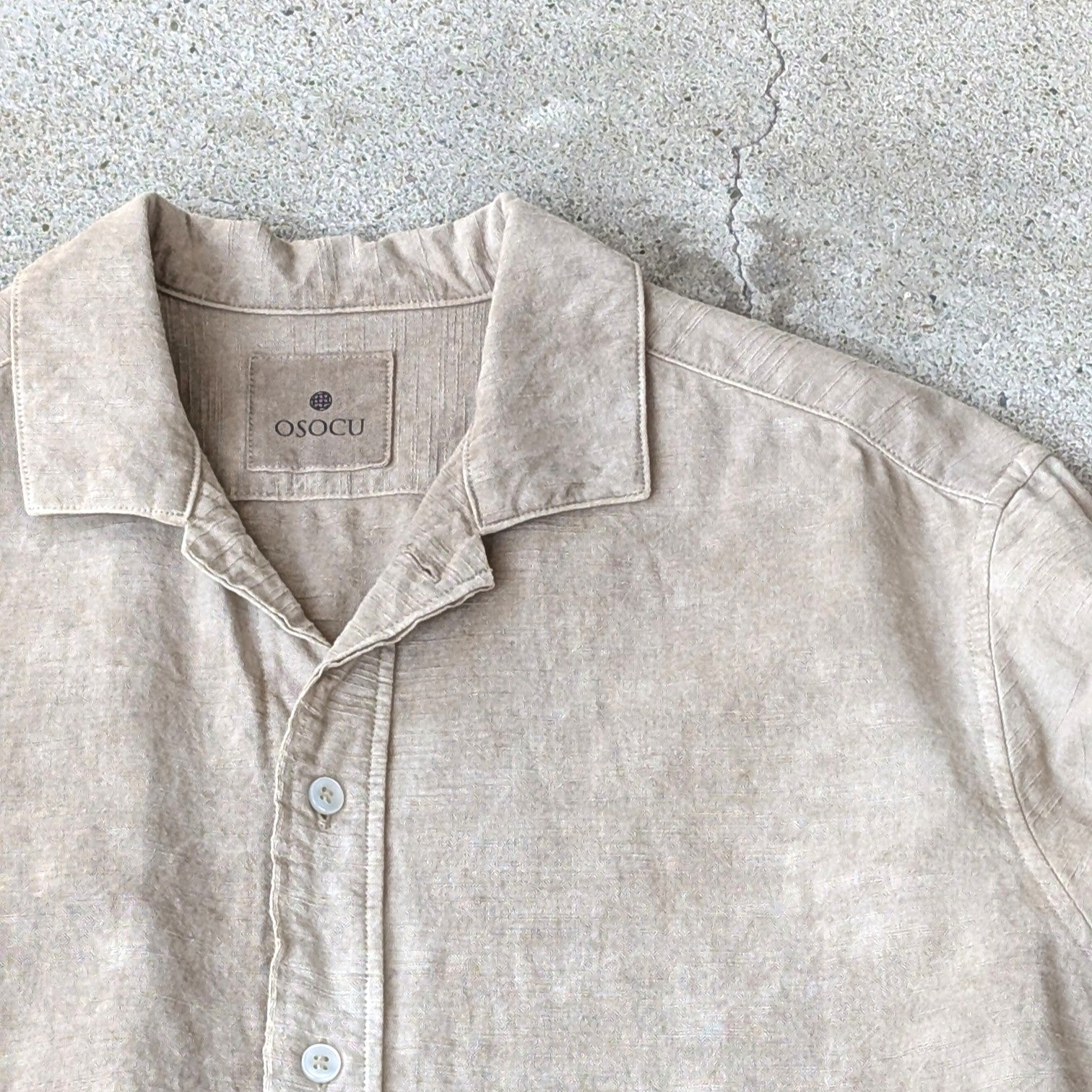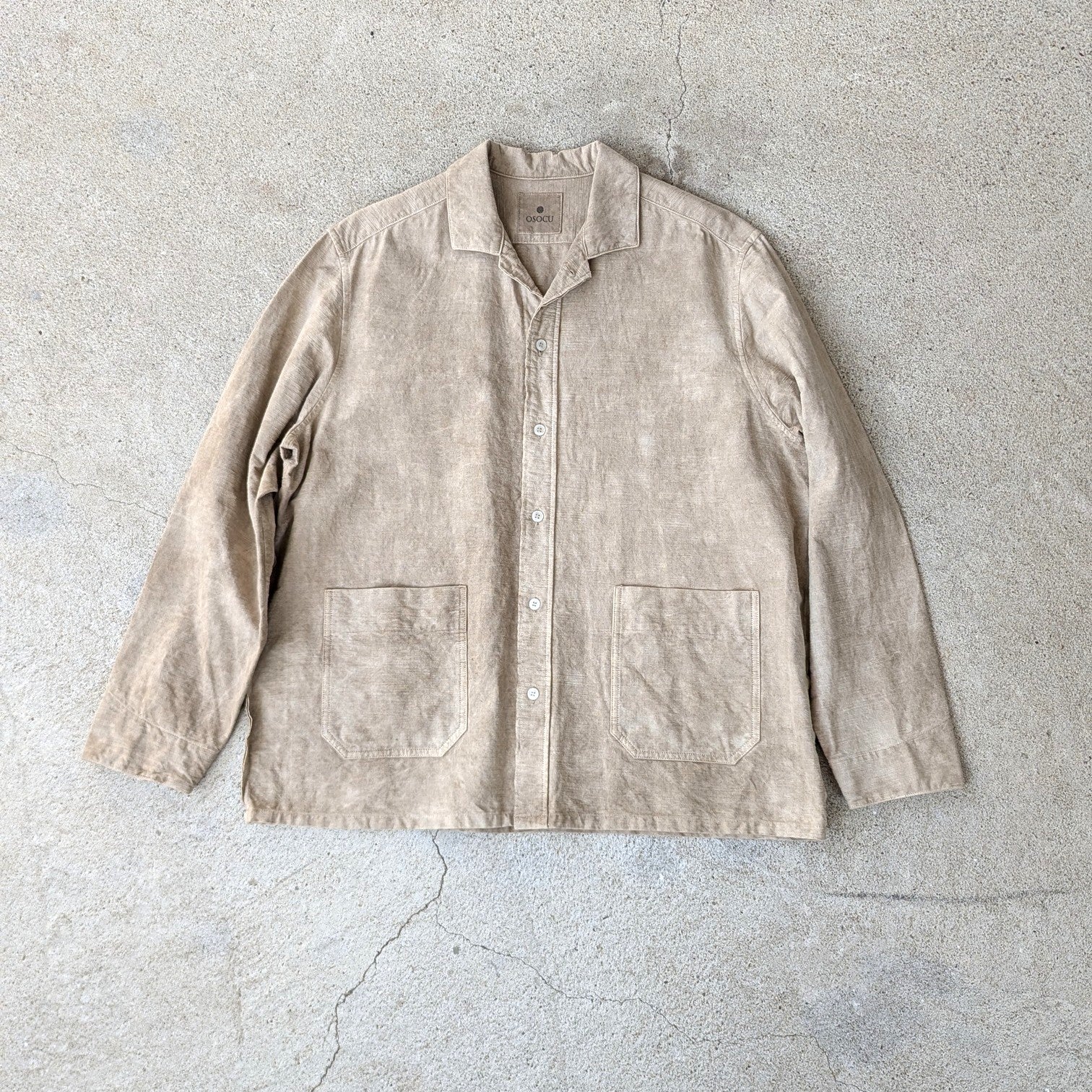 <OSOCU> 知多木綿 オープンカラーシャツジャケット カバーオール いなべ市の黒土染め