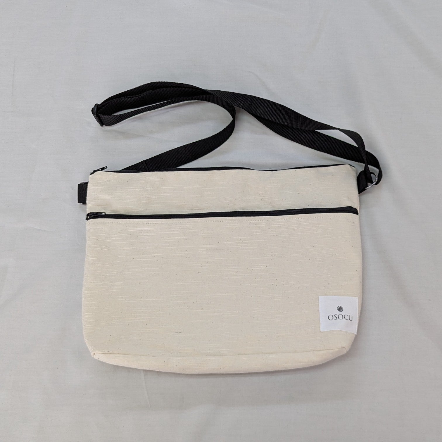 <OSOCU> 国産吊り編み生地のスウェットパーカー 配色袖バージョン アイボリー