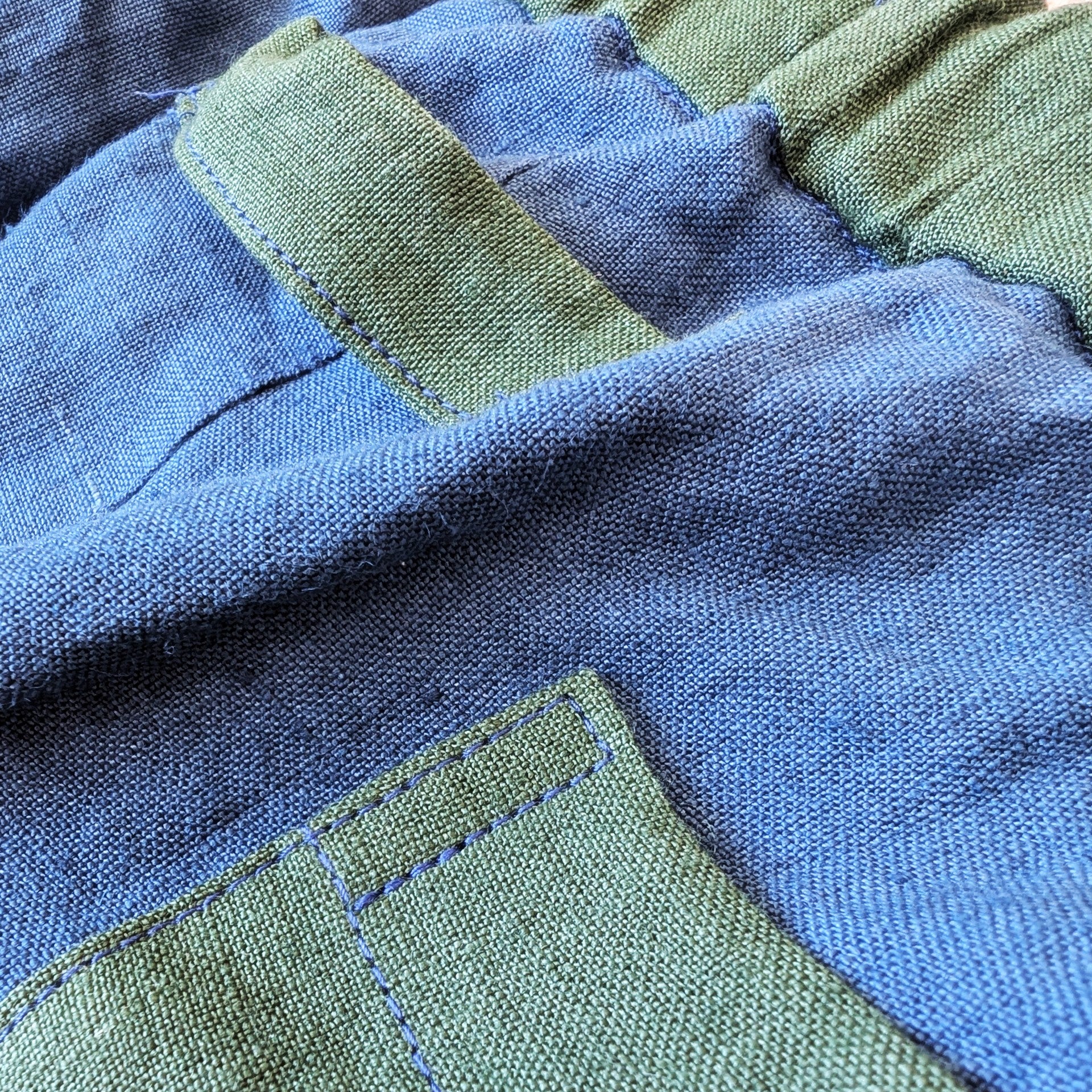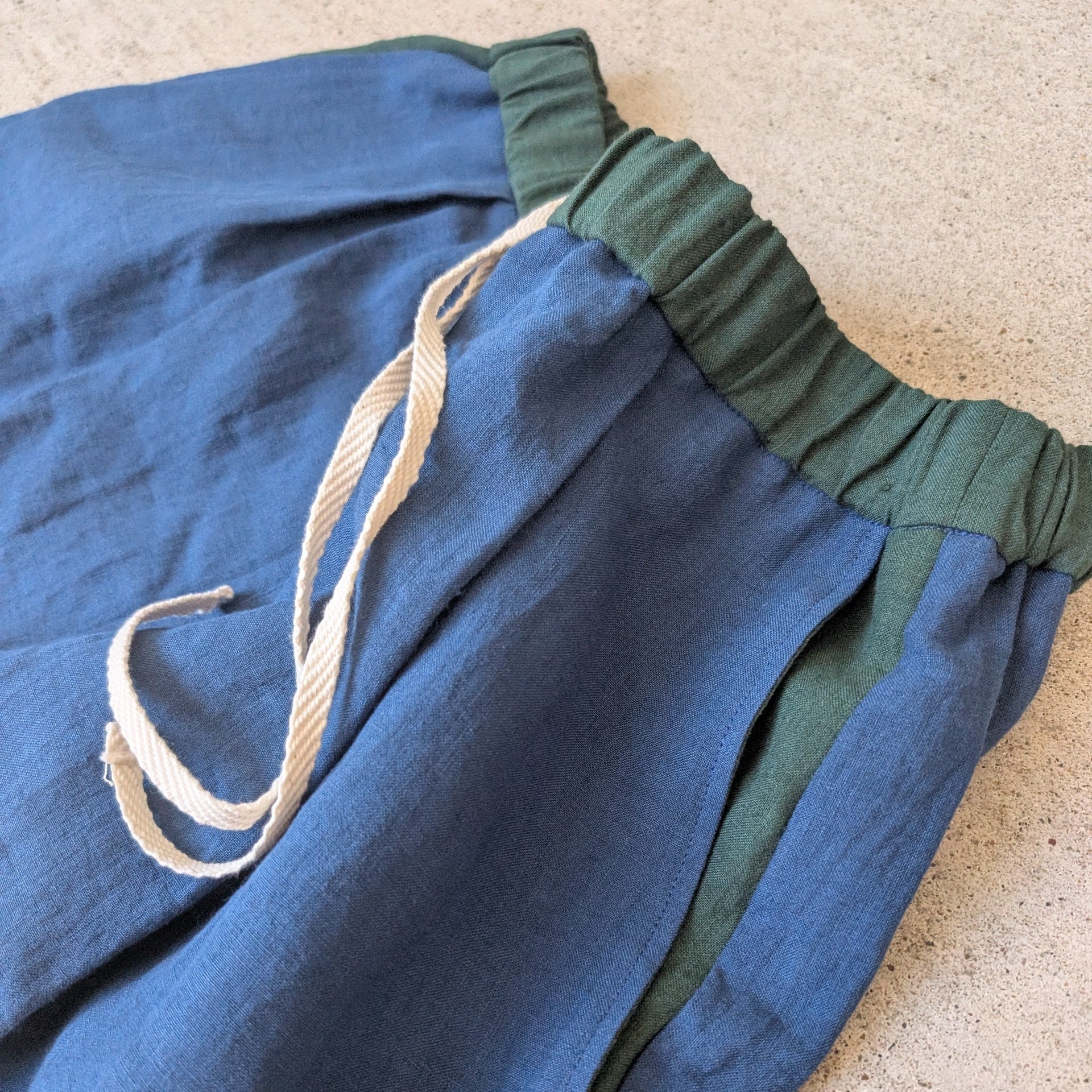 <OSOCU>遠州織物 ヨーロッパリネン100% ハーフパンツ ネイビー×ボトルグリーン