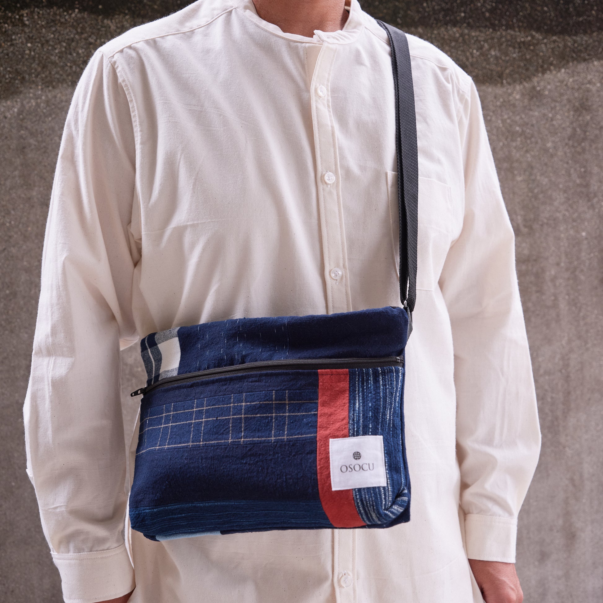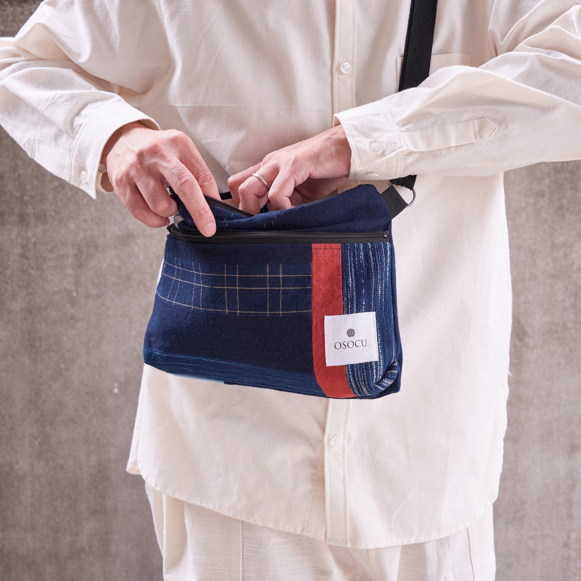 <OSOCU> 備後節織 パッチワーク サコッシュ バッグ No.002